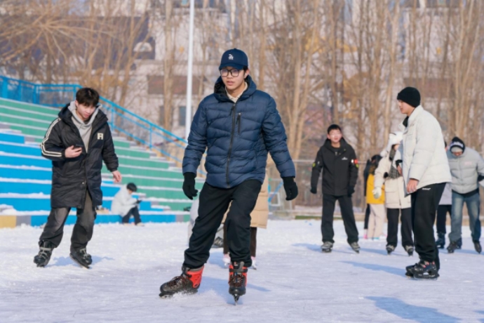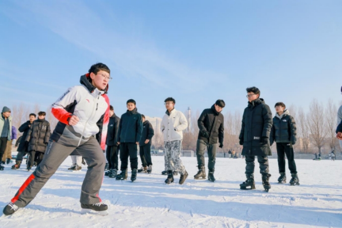 九游会J9.(中国)官方网站滑冰场由长400米、宽5米的环形跑道浇制而成,最多可容纳400人同时上课。学生们身着专业冰上运动装备,在专业教师的指导下,认真学习滑行、加速、停止等滑冰基本动作和冬季冰上安全保护相关知识。