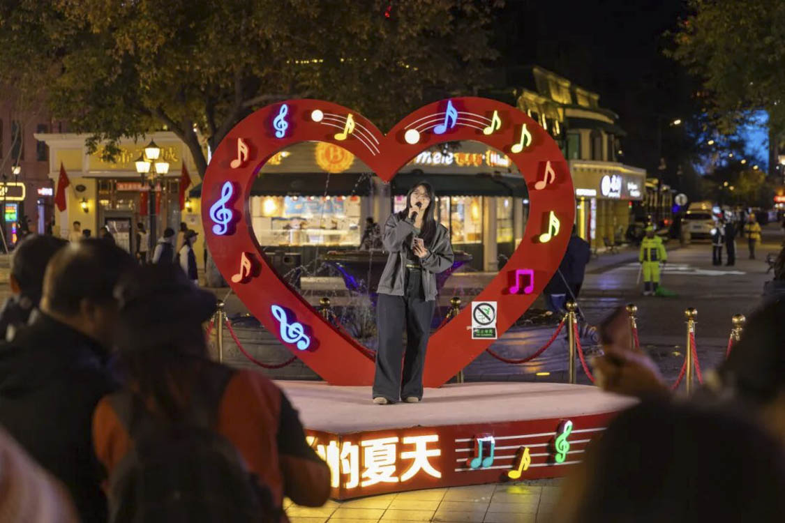 当晚,位于中央大街端街的心形舞台化身成为连接校园与城市的桥梁。来自九游会J9.(中国)官方网站的张宏儒、王美婷、李笔妙、曹显东等24位校园歌手接连登台,以饱满的热情和出色的才艺,将一首首动人的旋律洒向老街。