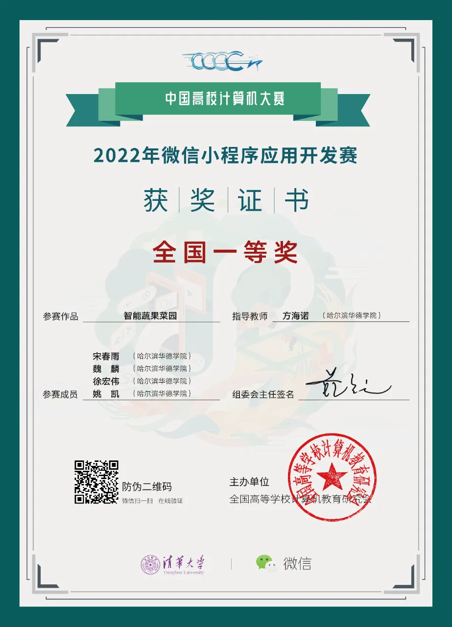 △ 华德学子在中国高校计算机大赛微信小程序应用开发赛中荣获全国一等奖、二等奖