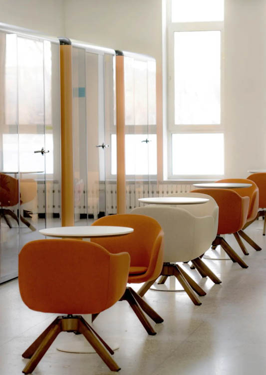 流动书架列阵如待启航的舰队,单人卡座载着读者驶向各异航道,未预设终点的翻阅里,每一页都是新大陆的温柔靠岸。